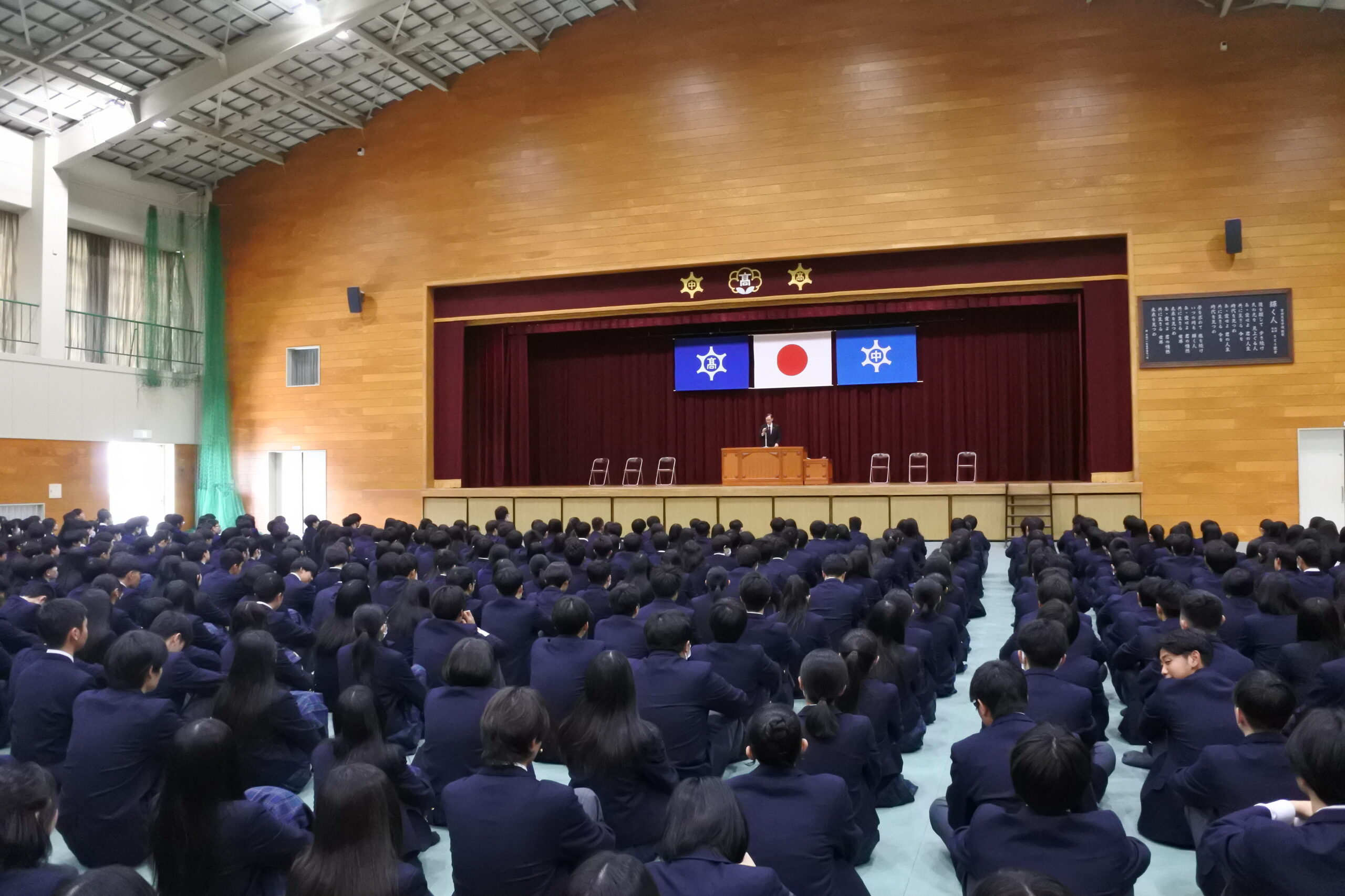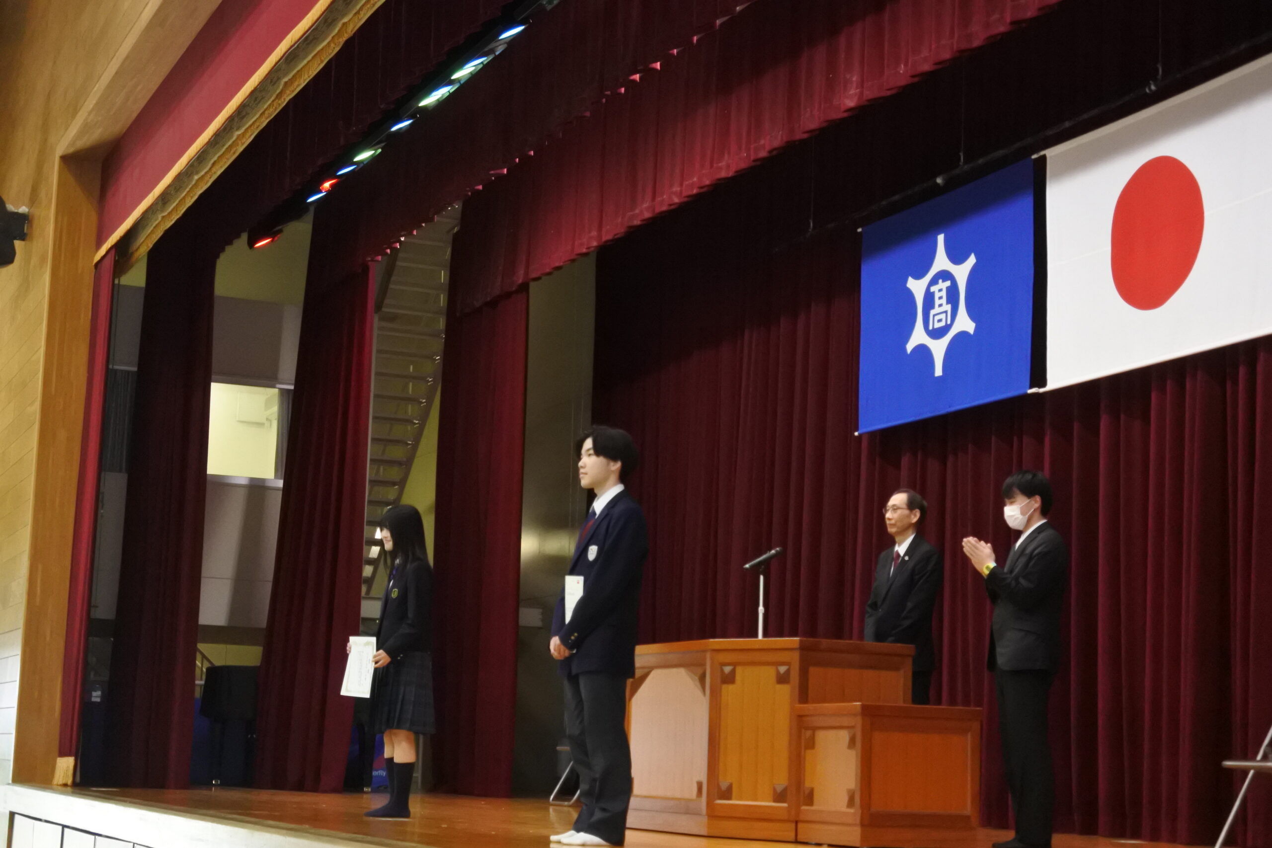 始業式では、課外活動で優秀な成績を収めた生徒の皆さんの表彰が行われました。