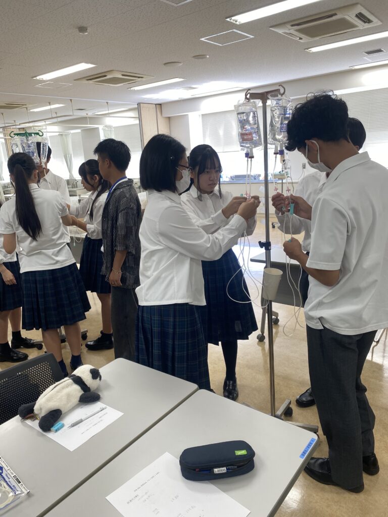 保健看護学科では輸液療法を体験させていただき、